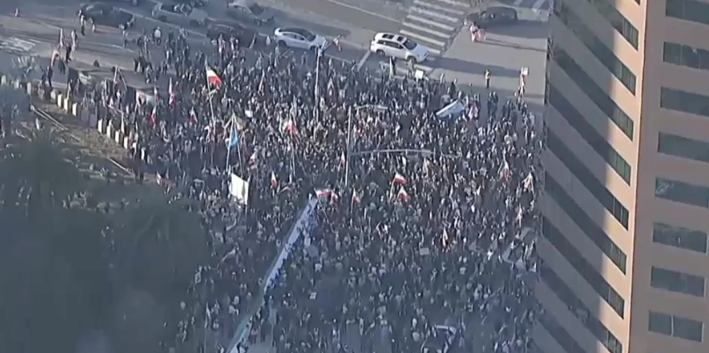 अमेरिका के कैलिफोर्निया राज्य के लॉस एंजेलिस में ईरान के सर्वोच्च नेता अयातुल्ला अली खामेनेई के खिलाफ प्रदर्शन के दौरान अफरा-तफरी मच गई। ‘नो शाह’ रैली और ईरान में धार्मिक शासन के विरोध के समर्थन में जुटी भीड़ में एक तेज रफ्तार ट्रक घुस गया।